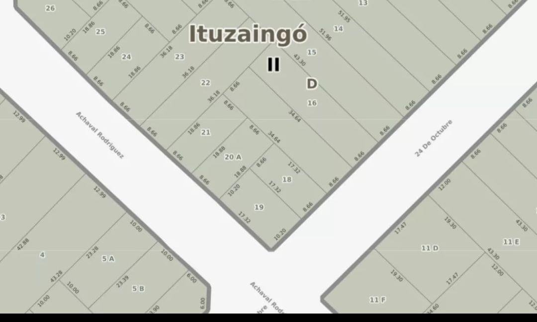 Venta de lote en zona comercial Ituzaingó lado sur con un ambiente para utilizar como obrador Servicios : Asfalto ,luz ,gas ,agua corriente y cloacas. Medidas 8,66x17,32. Dirección :24 de Octubre 1685 esq. Achaval Rodríguez. Listo para escriturar . Sin intermediarios ni comisiones. Se encuentra a 8 cuadras de la estación de Ituzaingó , 2 cuadras de la Av Rivadavia , a metros del Colegio Santos Angeles y Esclavas del Sagrado Corazón nivel incial, primario y secundario. Inmejorable zona arbolada y comercial ,líneas de colectivos a metros que llegan a todo el oeste y a Capital Federal .