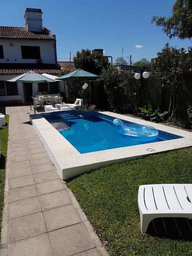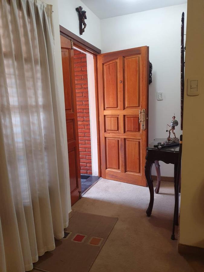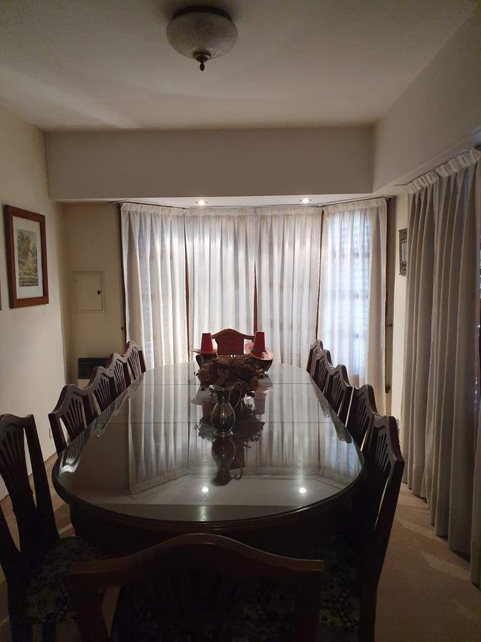 Casa Chalet en dos plantas- Castelar Norte- Inmejorable Zona Sobre Lote de 8.66 x 45 mts, 296 mts cub Planta Baja: Pequeña recepción, Living de 4,50 x 5,50 mts, Comedor principal deg 2,85 x 5 mts, Distribuidor de 2 x 4,60 mts con escalera de madera laqueada (con placares bajo escalera), 1 Dormitorio/escritorio de 3.00 x 4.00 mts (incluye Placard) Baño completo (con ducha) Cocina de 3 x 3,30 mts Comedor diario de 3 x 3.70 mts SUM de 8,40 x 2,90 mts Garaje cubierto con portón de reja corrediza , Garaje cerrado con portón de madera levadizo manual Patio iluminado de 6,50 x 8,66 incluye: Lavadero independiente Parrilla iluminada completa Parque iluminado de 13,50 x 8,66 incluye: Piscina climatizada con caldera a gas y dos motores para filtrado y jacuzzi; de 3,00x6.00 mts Quincho de 2,90 x 8,40 mts. Incluye: Baño completo (1,30 x 2,90 mts), Mesada con bacha y mueble bajo mesada , Calefon nuevo y anafe a gas (dos hornallas) Planta Alta 4 dormitorios, 2 baños completos Distribuidor de 2,30 x 1,50 mts, 1 Dormitorio de 3 x 4,50 mts, en suite, con vestidor de 2,10 x 1,90 mts y baño de 2.00 x 2,50 2 dormitorios de 3 x 4.30 mts (incluyen placard y espacio para escritorio) 1 dormitorio de 3,40 x 3,60 mts (incluye placard) 1 Baño de 2,30 x 2,50 completo con placard Características generales La vivienda permite la doble circulación por garaje con pasillo y amplia baulera. Calefacción a gas individual, por ambiente (7 equipos) Refrigeración con AA, por ambiente (6 equipos AA, algunos frio/calor) Ventiladores de techo con juego de luces (9 ventiladores) Planta Baja con pisos alfombrados (living y comedor principal) Resto PB con cerámica esmaltada Planta Alta totalmente alfombrada (excepto baño)
